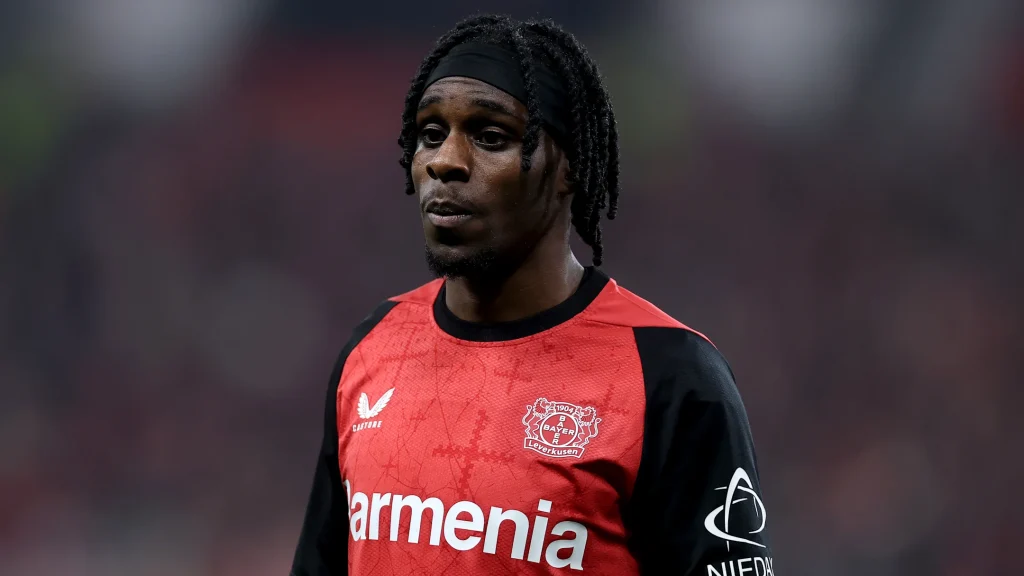 Jeremie Frimpong of Bayer Leverkusen remains a top target